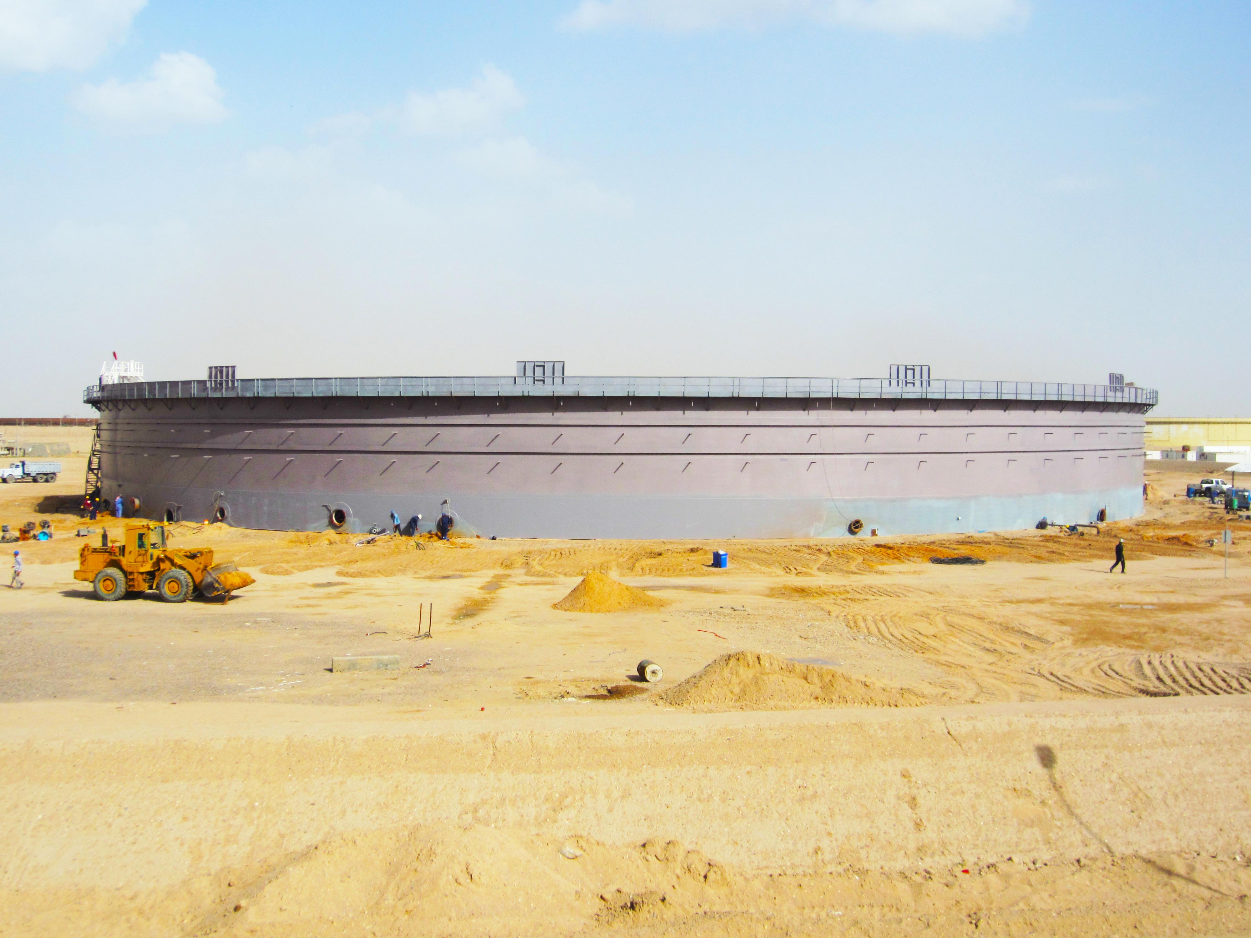 Constructiion of 3 double deck Crude oil Floating Roof Storage Tanks with a capacity of 66,000 m3 each. These tanks are located in the Tuba Tank Farm in Basra South of Iraq, approximately 60 km’s from Basra City.The tanks span at 91 m in diameter and at a height of 10m cumulating to approximately 1500 metric tons empty weight.