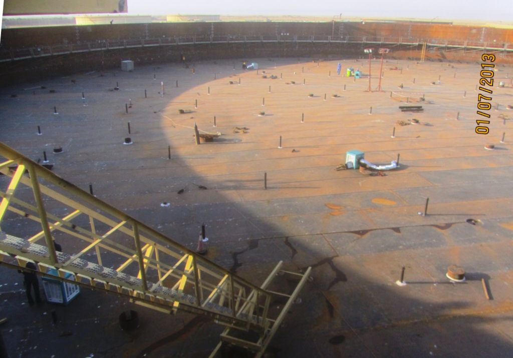 Constructiion of 3 double deck Crude oil Floating Roof Storage Tanks with a capacity of 66,000 m3 each. These tanks are located in the Tuba Tank Farm in Basra South of Iraq, approximately 60 km’s from Basra City.The tanks span at 91 m in diameter and at a height of 10m cumulating to approximately 1500 metric tons empty weight.