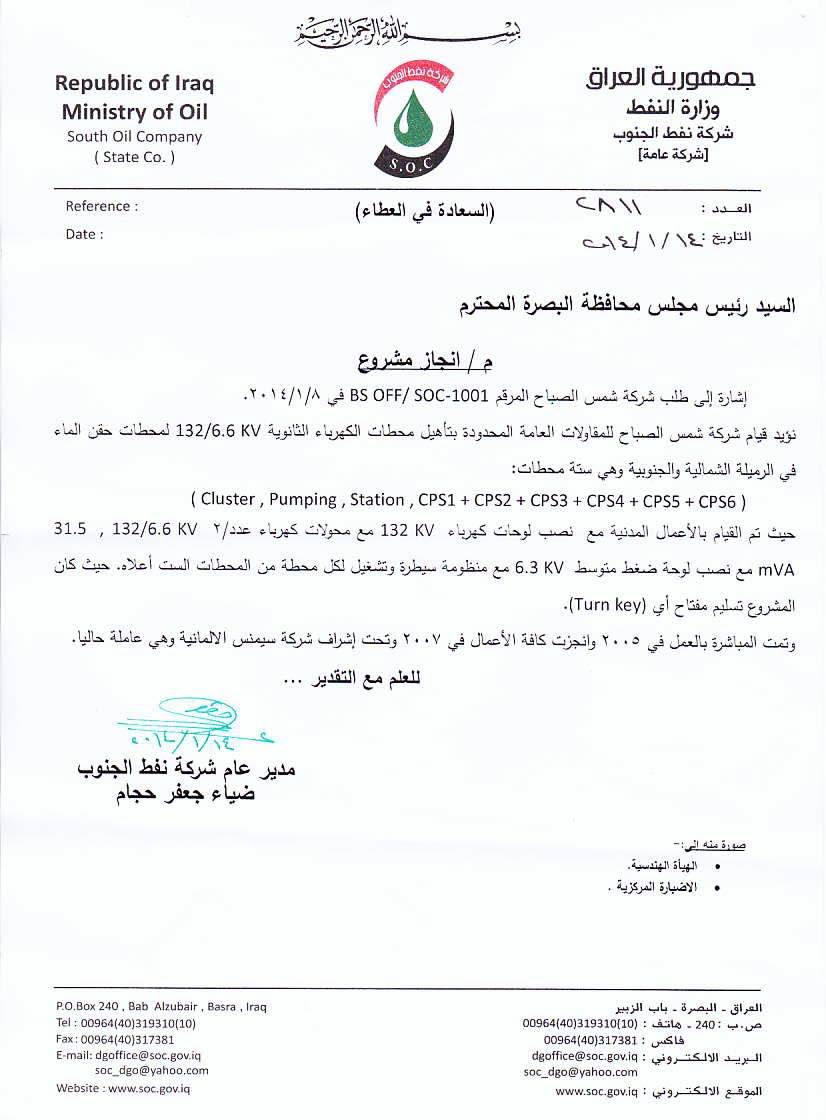 Private Iraqi Company specialized in supplying and installing power generation plants, Substations and O.H.L. including the following activities: