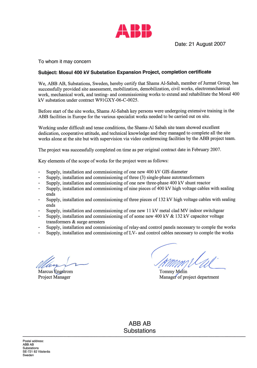 Registered in Iraq, SAS, the Flagship of the Group, Core business is EPC Contracting for Power Transmission, Distribution and Power Generation Plants.